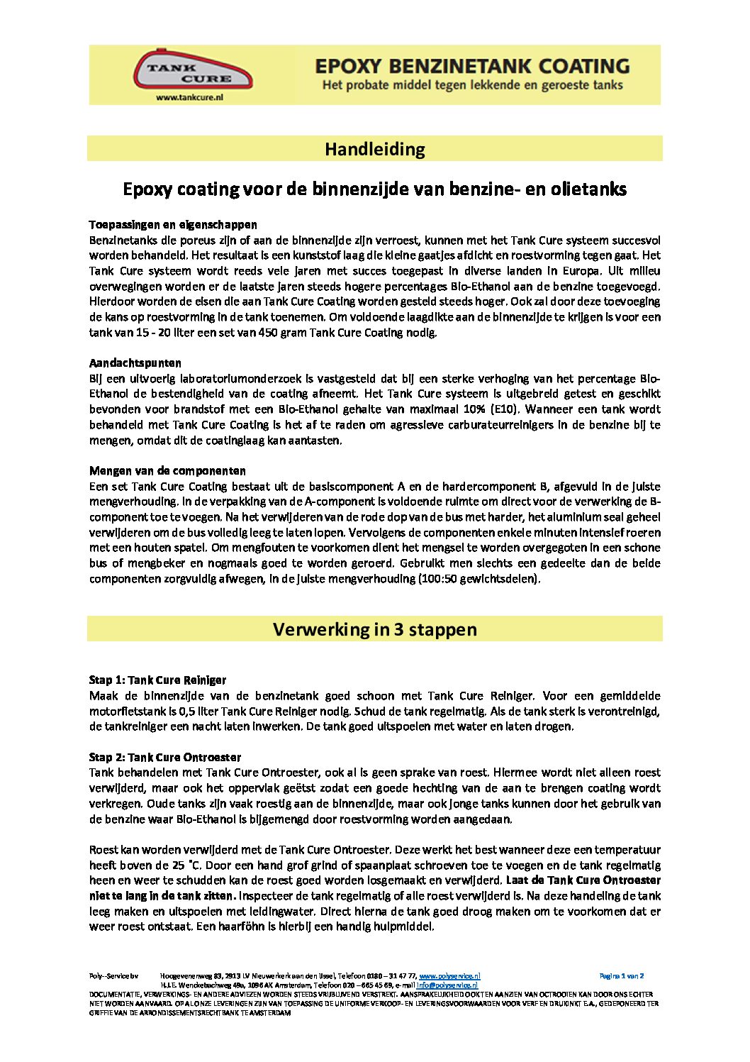 Tank Cure is an epoxy based inner coating for steel gas tanks. It can be used to coat new tanks before priming and painting. Also great to fix rusted gas tanks, even with small leakages at the bottom. It gives a tough coating that will last for years and is also resistant to fuel containing up to 10% Ethanol.